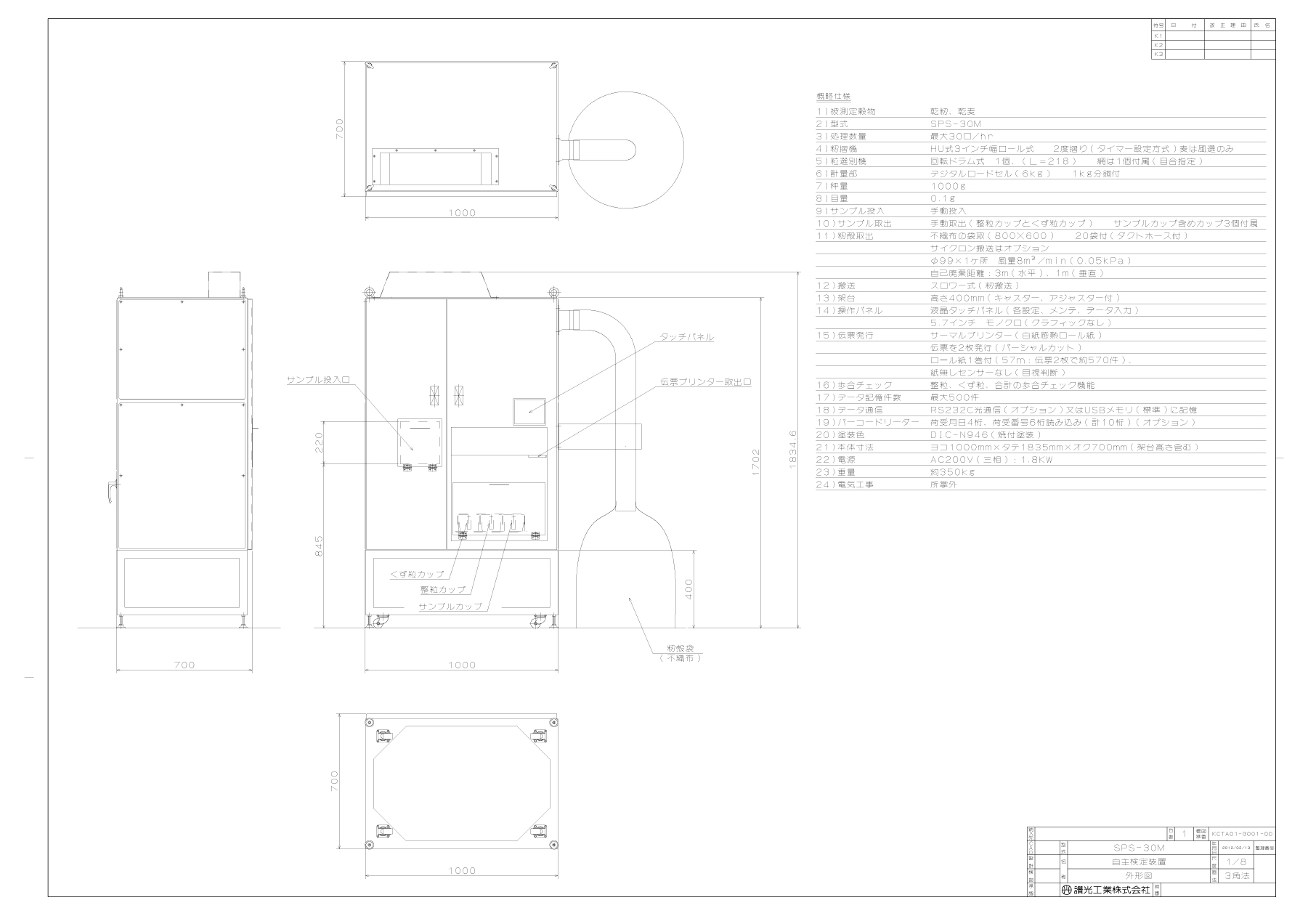 低コスト、コンパクト化された自主検査装置です。 処理能力は1時間あたり30件。 ミニライスセンター等に最適です。