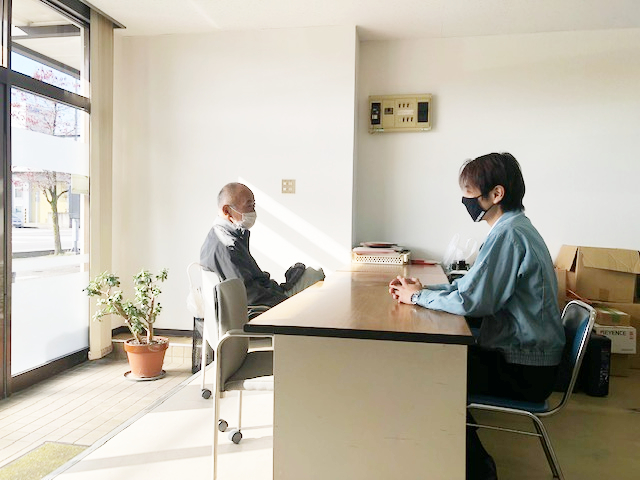 普段は客先へ訪問し営業活動しますが、今回はお客様から来訪して下さいました。何気ない日常会話の中で親密度が上がり、次の仕事に繋がる事も多いです。