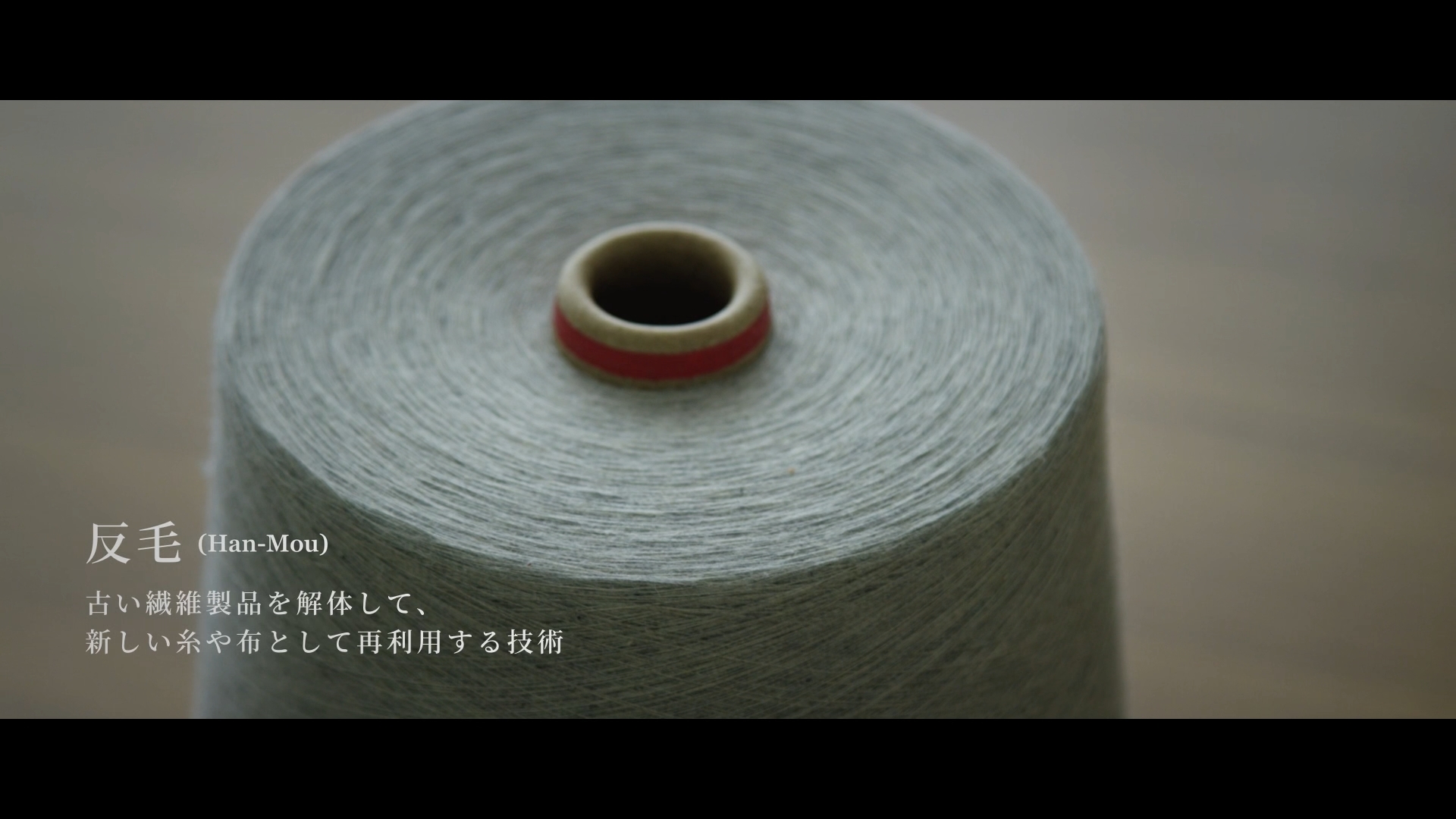 半世紀にわたって技術を磨いてきた縫製工場と、「反毛」の技術を得意とする工場とのコラボレーションから生まれた本プロジェクト。象徴的な“ループ”をモチーフに、古くなった服や端切れが新たな糸へと生まれ変わる循環のプロセスを映像化しました。